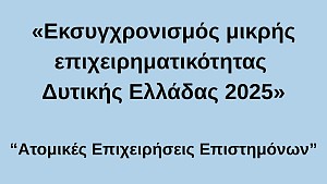 ΠΡΟΚΗΡΥΞΗ «ΕΚΣΥΓΧΡΟΝΙΣΜΟΣ ΜΕΣΑΙΕΣ ΕΠΙΧΕΙΡΗΜΑΤΙΚΟΤΗΤΑΣ ΔΥΤΙΚΗΣ ΕΛΛΑΔΑΣ 2025 - ΑΤΟΜΙΚΕΣ ΕΠΙΧΕΙΡΗΣΕΙΣ ΕΠΙΣΤΗΜΟΝΩΝ