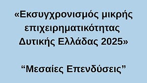ΠΡΟΚΗΡΥΞΗ «ΕΚΣΥΓΧΡΟΝΙΣΜΟΣ ΜΕΣΑΙΕΣ ΕΠΙΧΕΙΡΗΜΑΤΙΚΟΤΗΤΑΣ ΔΥΤΙΚΗΣ ΕΛΛΑΔΑΣ 2025 - ΜΕΣΑΙΕΣ ΕΠΕΝΔΥΣΕΙΣ»