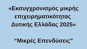 ΠΡΟΚΗΡΥΞΗ «ΕΚΣΥΓΧΡΟΝΙΣΜΟΣ ΜΙΚΡΗΣ ΕΠΙΧΕΙΡΗΜΑΤΙΚΟΤΗΤΑΣ ΔΥΤΙΚΗΣ ΕΛΛΑΔΑΣ 2025- ΜΙΚΡΕΣ ΕΠΕΝΔΥΣΕΙΣ»