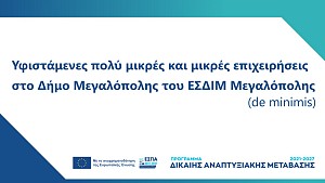 Έγκριση Αποτελεσμάτων Αξιολόγησης για την Δράση 1.2.1.1 Ενίσχυση Υφιστάμενων Πολύ Μικρών και Μικρών Επιχειρήσεων στο Δήμο Μεγαλόπολης του Εδαφικού Σχεδίου Δίκαιης Μετάβασης Μεγαλόπολης (Α/Α ΟΠΣ ΕΣΠΑ: 14478)